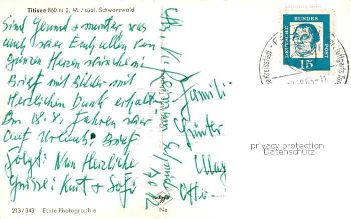 73575630 alte Postkarte Titisee postalisch gelaufen Erhaltung siehe scans [LiesaD40] KatCode: 11110008315113