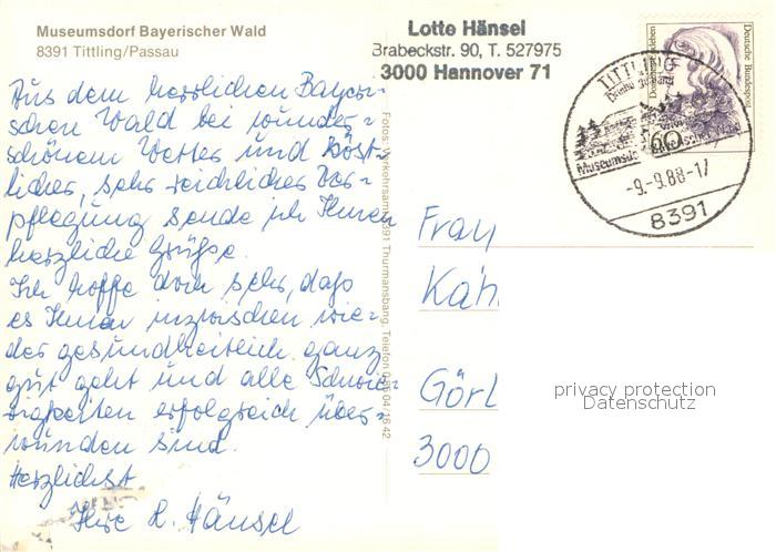 73641409 alte Postkarte Titting Gasthaus Muehlhiasl Kegelbahn Museumsdorf Bayerischer Wald postalisch gelaufen Erhaltung siehe scans [FriedD77] KatCode: 11110009176164
