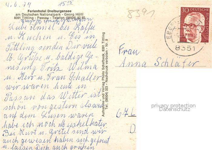 73160724 alte Postkarte Tittling Ferienhotel Dreiburgensee postalisch gelaufen Erhaltung siehe scans [KathaD81] KatCode: 11110009275152