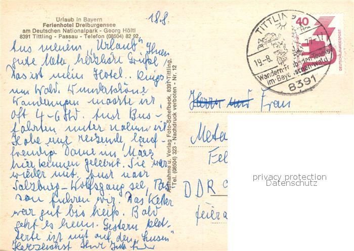73123278 alte Postkarte Tittling Ferienhotel Dreiburgensee postalisch gelaufen Erhaltung siehe scans [LiesaD40] KatCode: 11110009275152