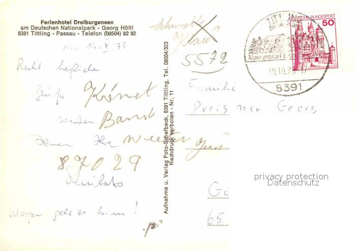 72900334 alte Postkarte Tittling Ferienhotel Dreiburgensee postalisch gelaufen Erhaltung siehe scans [FriedD77] KatCode: 11110009275152