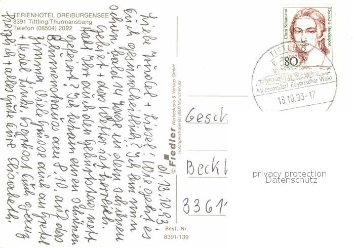 72804916 alte Postkarte Tittling Ferienhotel Dreiburgensee postalisch gelaufen Erhaltung siehe scans [FriedD77] KatCode: 11110009275152