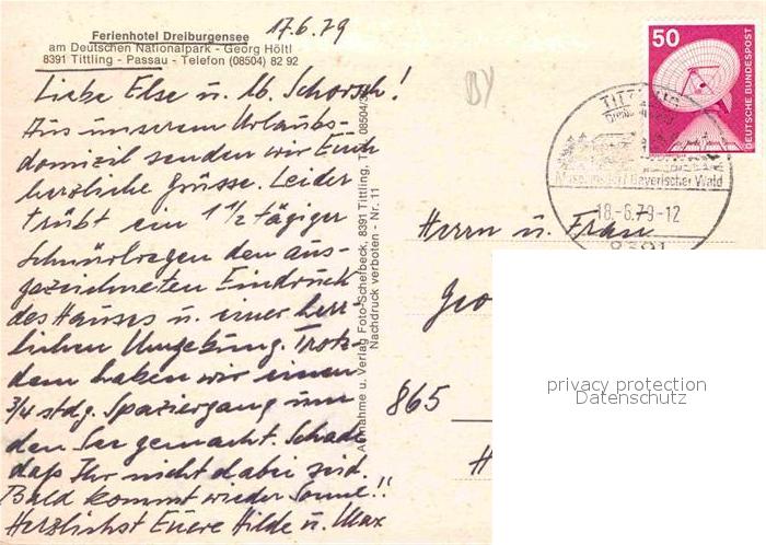 72675930 alte Postkarte Tittling Ferienhotel Dreiburgensee postalisch gelaufen Erhaltung siehe scans [LiesaD40] KatCode: 11110009275152