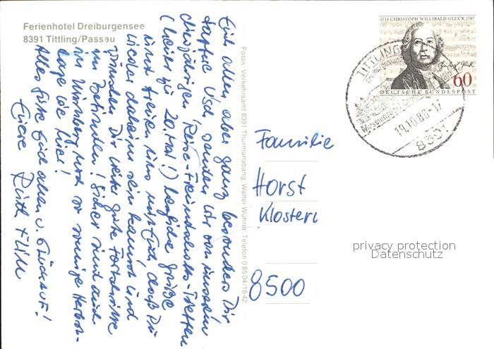 72460677 alte Postkarte Tittling Ferienhotel Dreiburgensee postalisch gelaufen Erhaltung siehe scans KatCode: 11110009275152