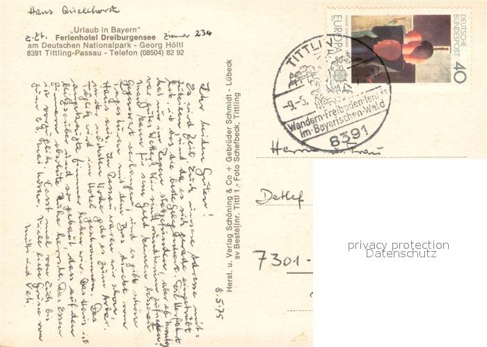 73653051 alte Postkarte Tittling Ferienhotel Dreiburgensee postalisch gelaufen Erhaltung siehe scans [WerneD78] KatCode: 11110009275152