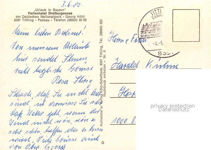 73598828 alte Postkarte Tittling Ferienhotel Dreiburgensee postalisch gelaufen Erhaltung siehe scans [PaolaD17] KatCode: 11110009275152