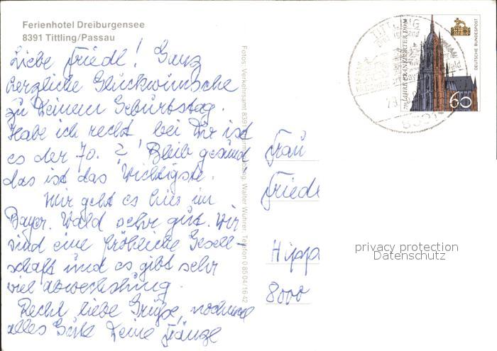 72146585 alte Postkarte Tittling Ferienhotel Dreiburgensee Gastraum Terrasse Rezeption postalisch gelaufen Erhaltung siehe scans KatCode: 11110009275152