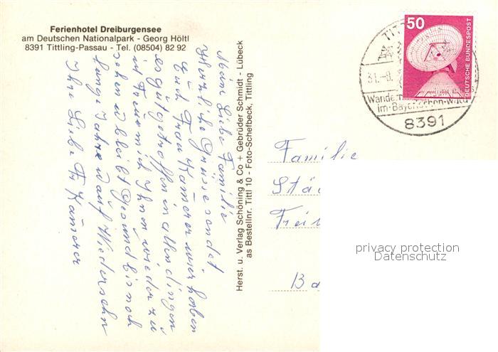73608725 alte Postkarte Tittling Ferienhotel Dreiburgensee Hallenbad Tanzbar Gaestezimmer Theatersaal postalisch gelaufen Erhaltung siehe scans [WerneD78] KatCode: 11110009275152