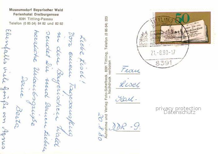 72640400 alte Postkarte Tittling Ferienhotel Dreiburgensee Museumsdorf Bayerischer Wald postalisch gelaufen Erhaltung siehe scans [FriedD77] KatCode: 11110009275152