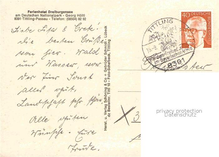 72841855 alte Postkarte Tittling Ferienhotel Dreiburgensee Tanzbar Schwimmbad Gaestezimmer Theatersaal postalisch gelaufen Erhaltung siehe scans [WerneD78] KatCode: 11110009275152