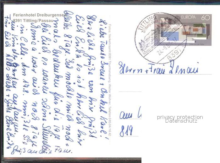72147383 alte Postkarte Tittling Ferienhotel Dreiburgensee Terrasse Gastraum Rezeption postalisch gelaufen Erhaltung siehe scans KatCode: 11110009275152
