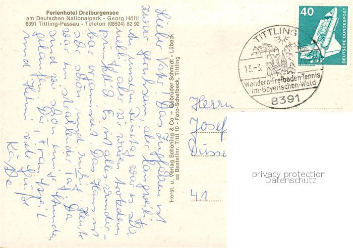 73813163 alte Postkarte Tittling Hotel Dreiburgensee Schwimmbad Tanzbar Gaestezimmer Theatersaal postalisch gelaufen Erhaltung siehe scans [WerneD78] KatCode: 11110009275152
