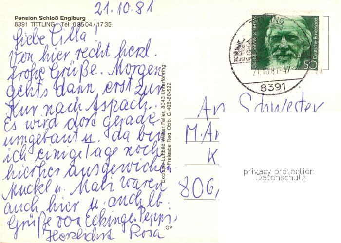 73197151 alte Postkarte Tittling Pension Schloss Englburg Fliegeraufnahme postalisch gelaufen Erhaltung siehe scans [FriedD77] KatCode: 11110009275152