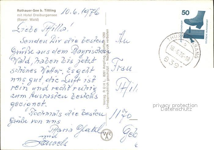 72146589 alte Postkarte Tittling Rothauer See mit Hotel Dreiburgensee postalisch gelaufen Erhaltung siehe scans KatCode: 11110009275152