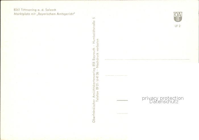 72462237 Tittmoning Salzach Marktplatz mit Bayerischem Amtsgericht postalisch nicht gelaufen Erhaltung siehe scans KatCode: 11110009189152