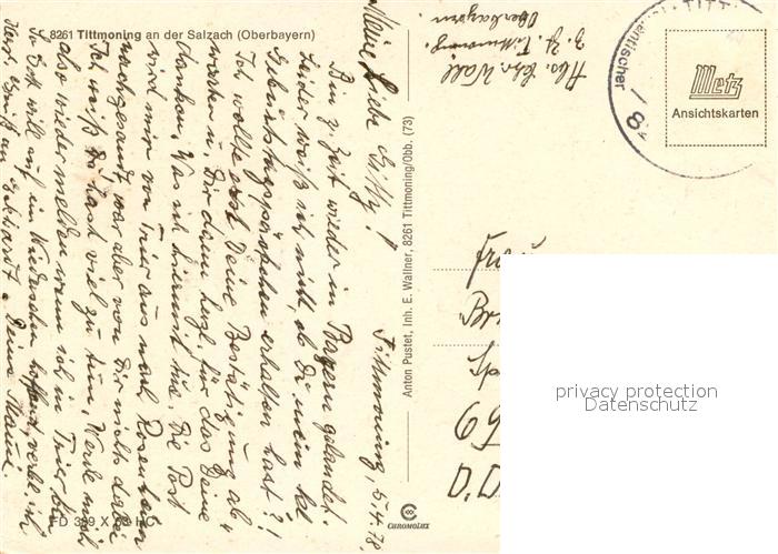 73734971 alte Postkarte Tittmoning Salzach Stadtansichten Zentrum Kirche Burg postalisch gelaufen Erhaltung siehe scans [FriedD77] KatCode: 11110009189152