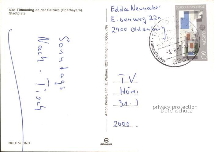 72133139 alte Postkarte Tittmoning Salzach Stadtplatz postalisch gelaufen Erhaltung siehe scans KatCode: 11110009189152