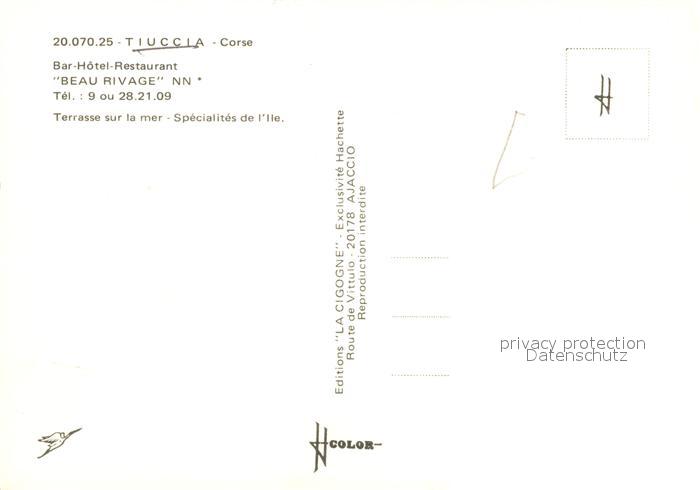 13320630 Tiuccia Bar-Hotel-Restaurant Beau Rivage postalisch nicht gelaufen Erhaltung siehe scans [PaolaD17] KatCode: 1117002A12A070