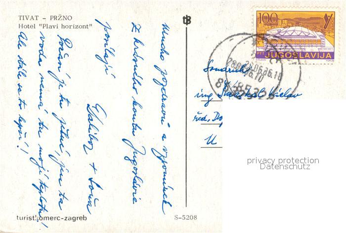 old postcard Tivat Hotel Plavi horizont postalisch gelaufen Erhaltung siehe scans [WerneD78]