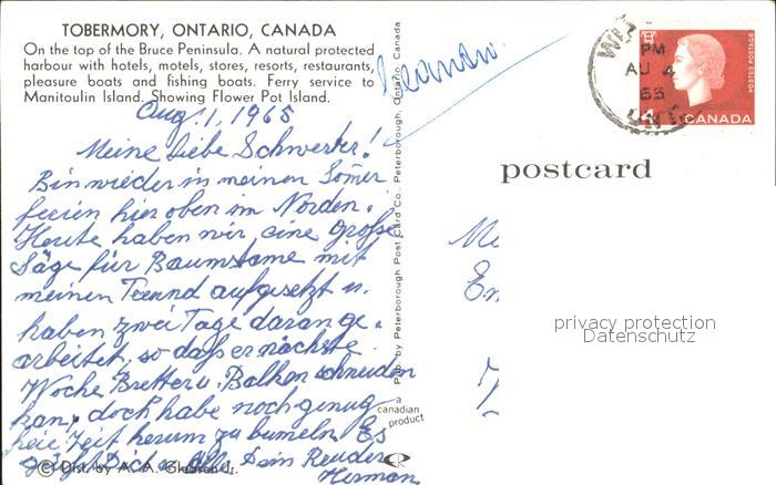 old postcard Tobermory Bruce Peninsula Harbour aerial view postalisch gelaufen Erhaltung siehe scans