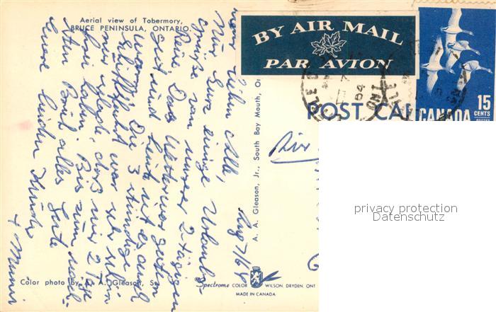 old postcard Tobermory Fliegeraufnahme Bruce Peninsula postalisch gelaufen Erhaltung siehe scans [KathaD81]