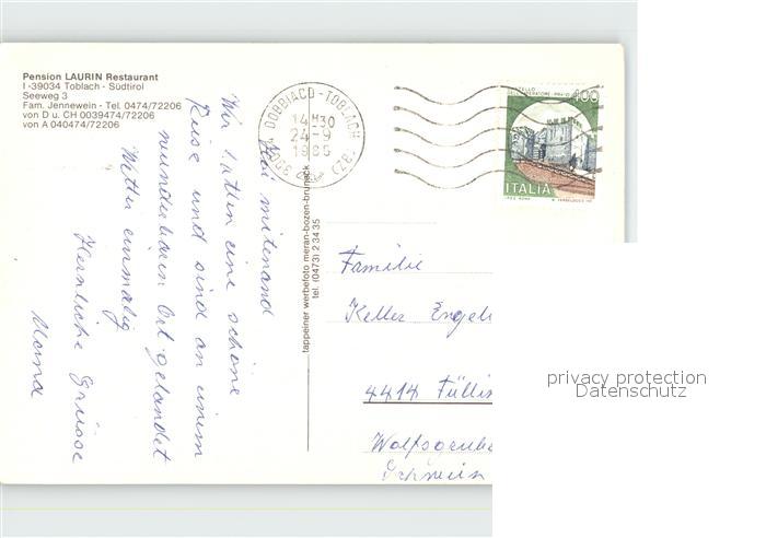 old postcard Toblach Suedtirol Pension Laurin postalisch gelaufen Erhaltung siehe scans