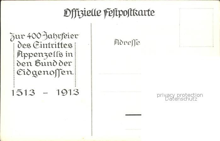 Tobler Viktor V.T. Festpostkarte 400. Jahrfeier Eintritt Appenzell Bund der Eidgenossen postalisch nicht gelaufen Erhaltung siehe scans