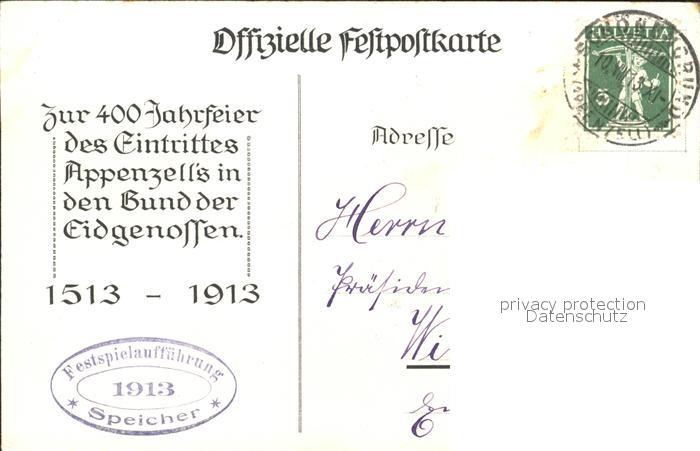 alte Postkarte Tobler Viktor V.T. Festpostkarte 400. Jahrfeier Eintritt Appenzell Bund der Eidgenossen postalisch gelaufen Erhaltung siehe scans