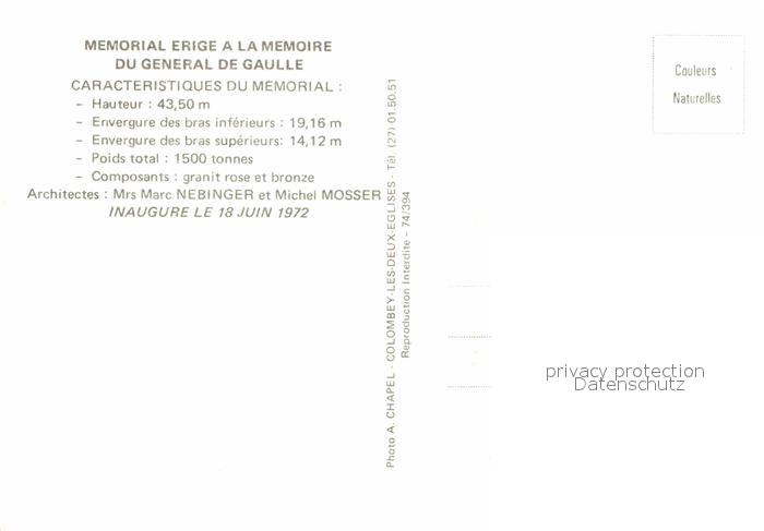 Tod Memorial Erige General de Gaulle postalisch nicht gelaufen Erhaltung siehe scans [PaolaD17]