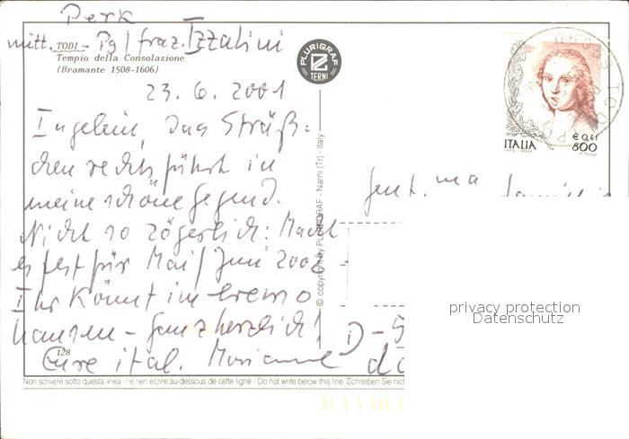 old postcard Todi Tempio della Consolazione postalisch gelaufen Erhaltung siehe scans
