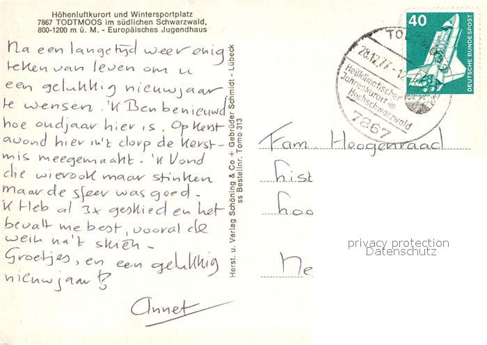 72935551 alte Postkarte Todtmoos Europaeisches Jugendhaus im Winter Kurort im Schwarzwald postalisch gelaufen Erhaltung siehe scans [FriedD77] KatCode: 11110008337108