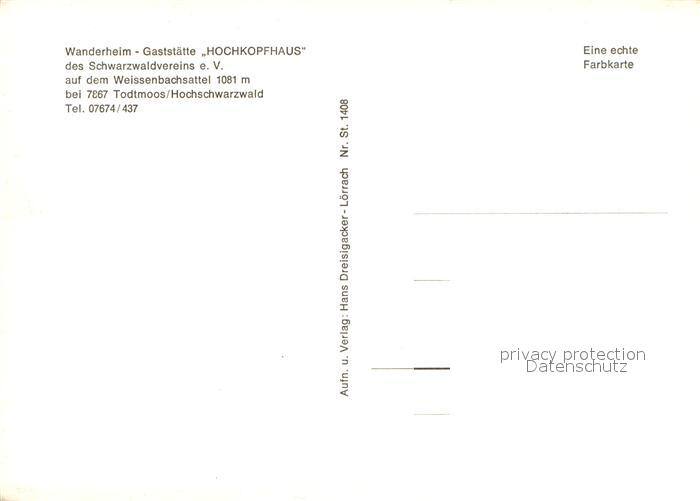 72946482 Todtmoos Hochkopfhaus Skigebiet postalisch nicht gelaufen Erhaltung siehe scans [LiesaD40] KatCode: 11110008337108