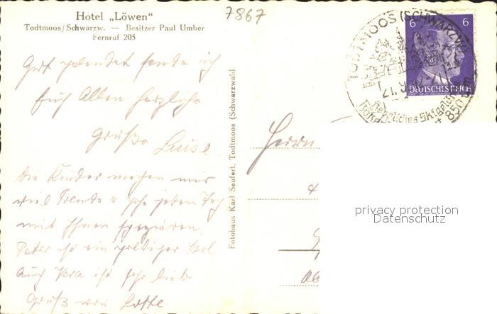 31714659 alte Postkarte Todtmoos Hotel Loewen Fruehstuecksstube postalisch gelaufen Erhaltung siehe scans KatCode: 11110008337108