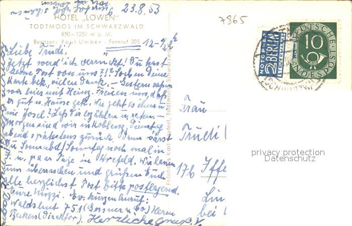 31714660 alte Postkarte Todtmoos Hotel Loewen postalisch gelaufen Erhaltung siehe scans KatCode: 11110008337108