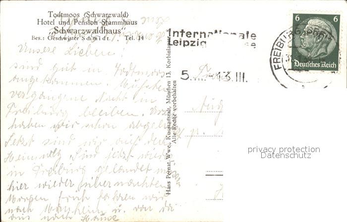 31715166 alte Postkarte Todtmoos Hotel Pension Stammhaus Schwarzwaldhaus postalisch gelaufen Erhaltung siehe scans KatCode: 11110008337108