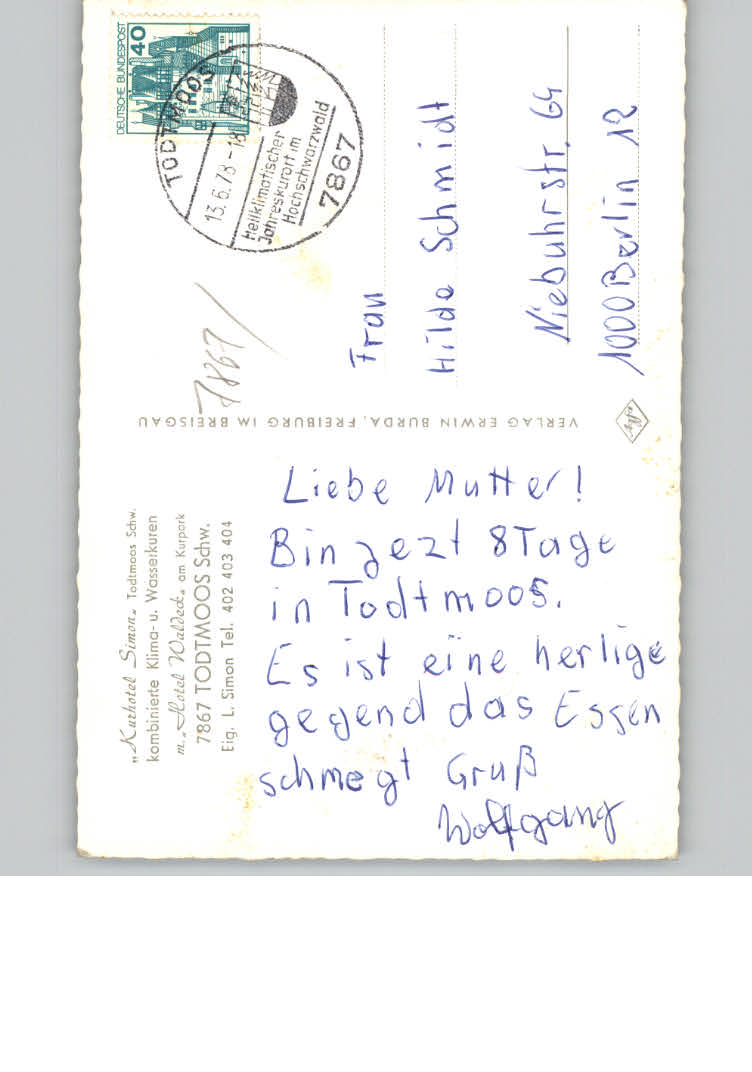 31176080 Todtmoos Hotel Simon postalisch nicht gelaufen KatCode: 11110008337108