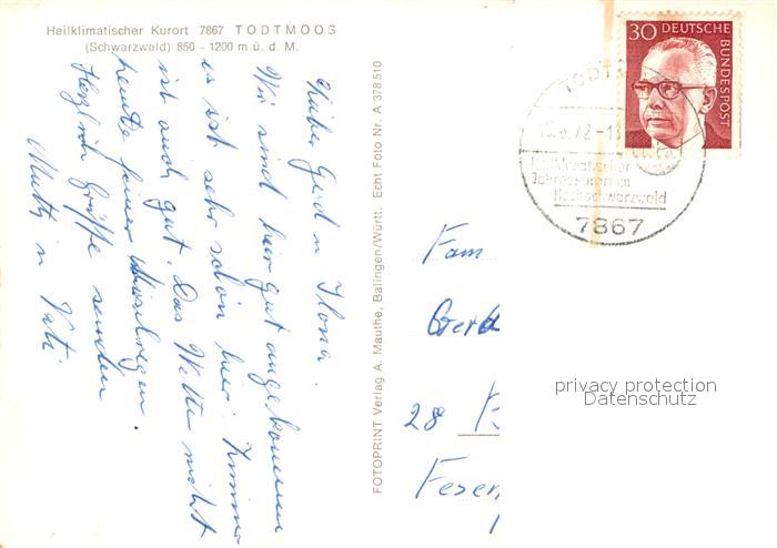 72987921 alte Postkarte Todtmoos Panorama Kurort im Schwarzwald Kirche postalisch gelaufen Erhaltung siehe scans [FriedD77] KatCode: 11110008337108
