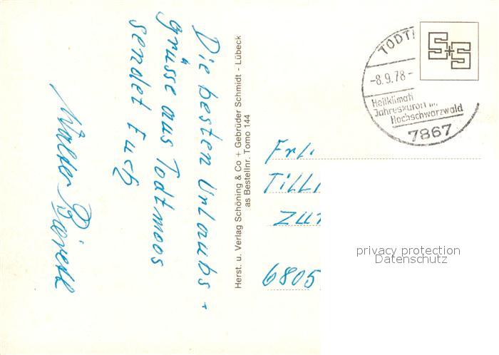 73070781 alte Postkarte Todtmoos Panorama Schwarzwald Kurpark Wallfahrtskirche Freibad Schwarzwaldhaus Alpenblick vom Hochkopf postalisch gelaufen Erhaltung siehe scans [FriedD77] KatCode: 11110008337108