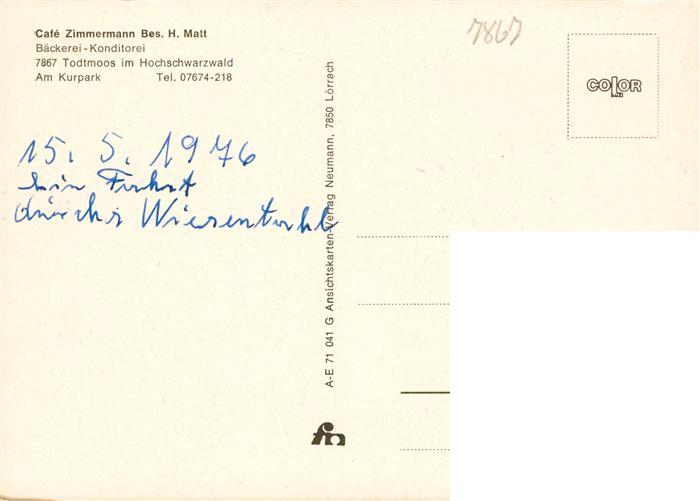 73927840 Todtmoos Schwarzwald BW Am Kurpark Cafe Zimmermann Gastraum Terrasse postalisch nicht gelaufen Erhaltung siehe scans [WerneD78] Wern Katcode 11110008337108