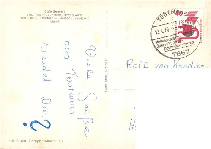 73927606 Todtmoos Schwarzwald BW Cafe Seufert postalisch gelaufen Erhaltung siehe scans [WerneD78] alte Postkarte Wern Katcode 11110008337108