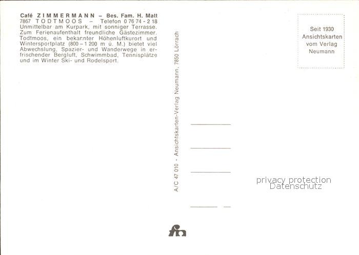 72222636 Todtmoos Schwarzwald BW Cafe Zimmermann am Kurpark postalisch nicht gelaufen Erhaltung siehe scans KatCode: 11110008337108