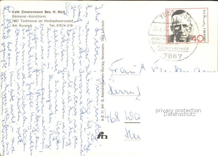 71986061 alte Postkarte Todtmoos Schwarzwald BW Cafe Zimmermann Baeckerei postalisch gelaufen KatCode: 11110008337108