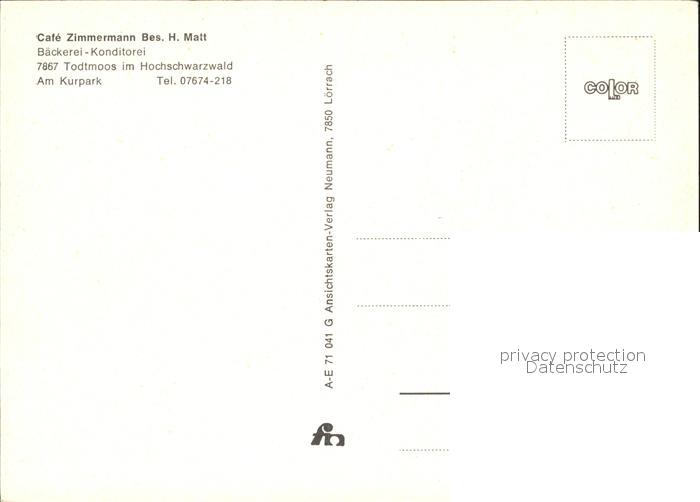 72322338 Todtmoos Schwarzwald BW Cafe Zimmermann postalisch nicht gelaufen Erhaltung siehe scans KatCode: 11110008337108