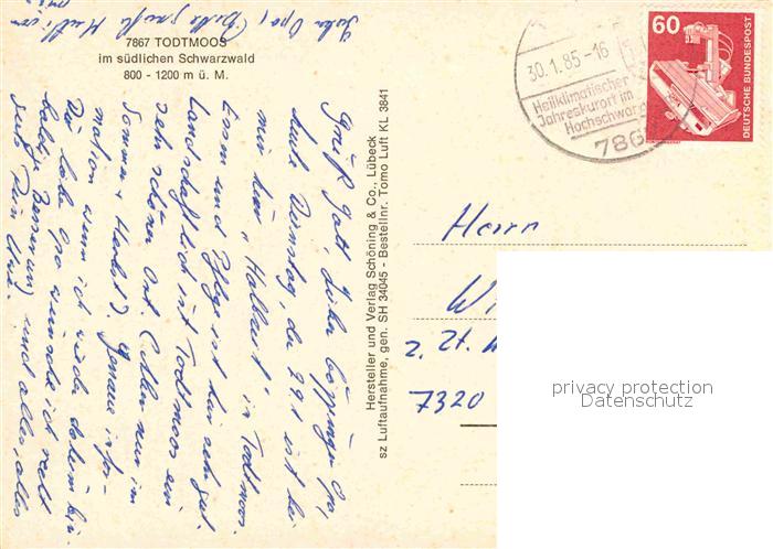 72725899 alte Postkarte Todtmoos Schwarzwald BW Fliegeraufnahme postalisch gelaufen Erhaltung siehe scans [WerneD78] KatCode: 11110008337108