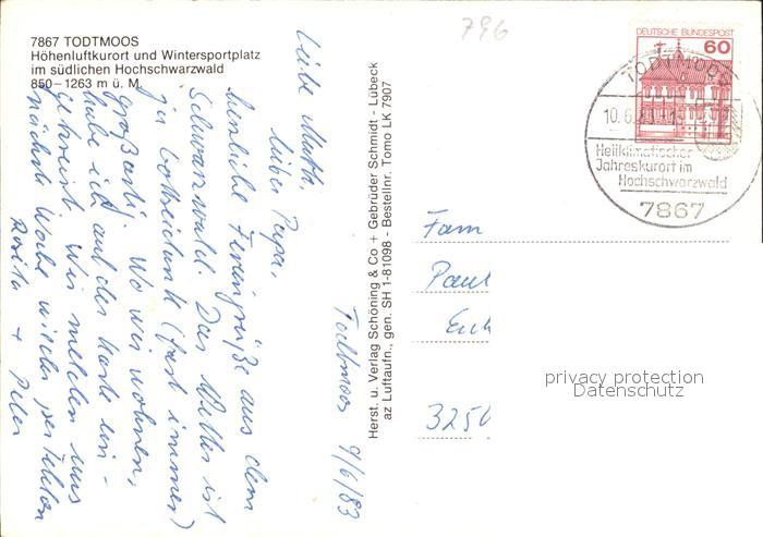 72613697 alte Postkarte Todtmoos Schwarzwald BW Fliegeraufnahme postalisch gelaufen Erhaltung siehe scans [WerneD78] KatCode: 11110008337108