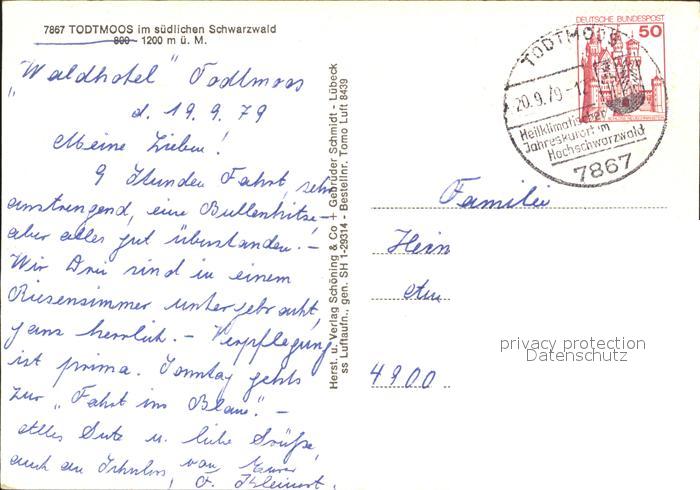 71946671 alte Postkarte Todtmoos Schwarzwald BW Fliegeraufnahme postalisch gelaufen Erhaltung siehe scans KatCode: 11110008337108