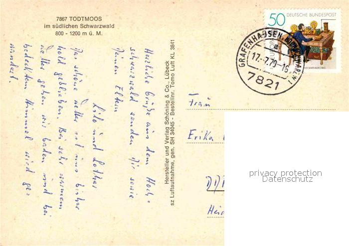 72771115 alte Postkarte Todtmoos Schwarzwald BW Fliegeraufnahme postalisch gelaufen Erhaltung siehe scans [WerneD78] KatCode: 11110008337108