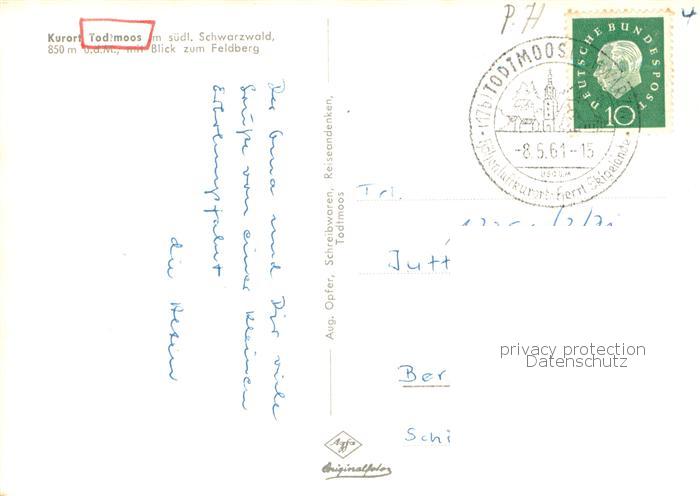 73761619 Todtmoos Schwarzwald BW Fliegeraufnahme mit Feldberg postalisch gelaufen Erhaltung siehe scans [WerneD78] alte Postkarte Wern Katcode 11110008337108
