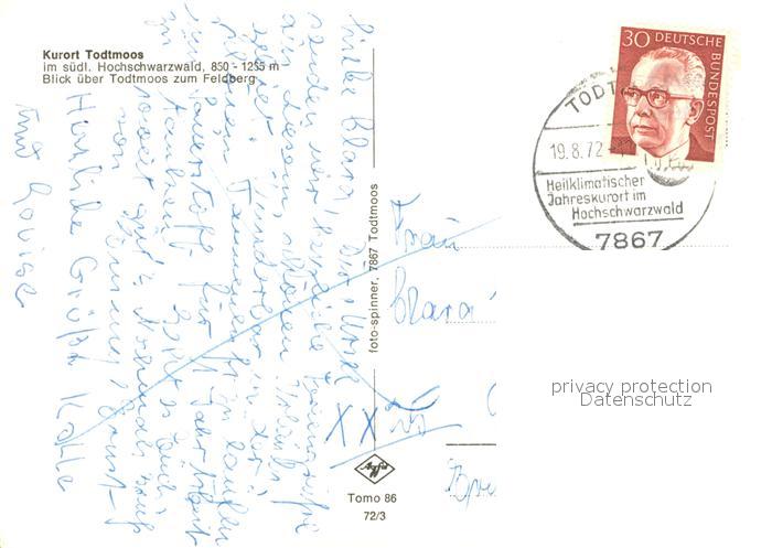 73712012 Todtmoos Schwarzwald BW Fliegeraufnahme mit Feldberg Glashuette und Schwarzenbach postalisch gelaufen Erhaltung siehe scans [WerneD78] alte Postkarte Wern Katcode 11110008337108