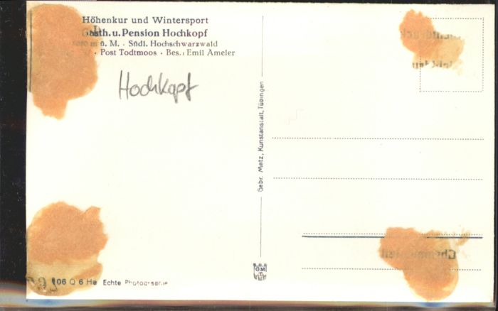 40807635 Todtmoos Schwarzwald BW Gasthaus Pension Hochkopf postalisch nicht gelaufen Alte Ansichtskarte Postkarte Katcode 11110008337108
